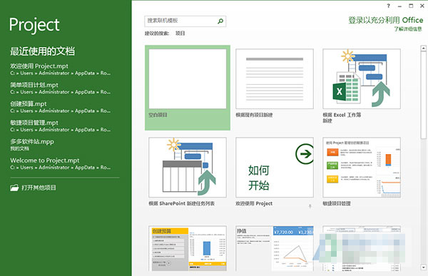 7、打開軟件,全新的project 2013界面如下所示: