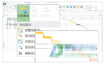 針對比較復(fù)雜的新項(xiàng)目,您的甘特圖很有可能看上去像由眾多的條型和連接線框糾纏不清在一起的網(wǎng)結(jié)。為協(xié)助您清除,您可以突顯任一每日任務(wù)的連接鏈(即每日任務(wù)途徑)。當(dāng)您點(diǎn)擊某一每日任務(wù)時,它的全部外置每日任務(wù)將以一種顏色表明,全部后置攝像頭每日任務(wù)將以另一種顏色表明。