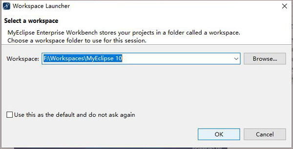 我這里設(shè)置為F:\Workspaces\MyEclipse 10,然后將Use this as the...勾選上,然后點(diǎn)擊OK;