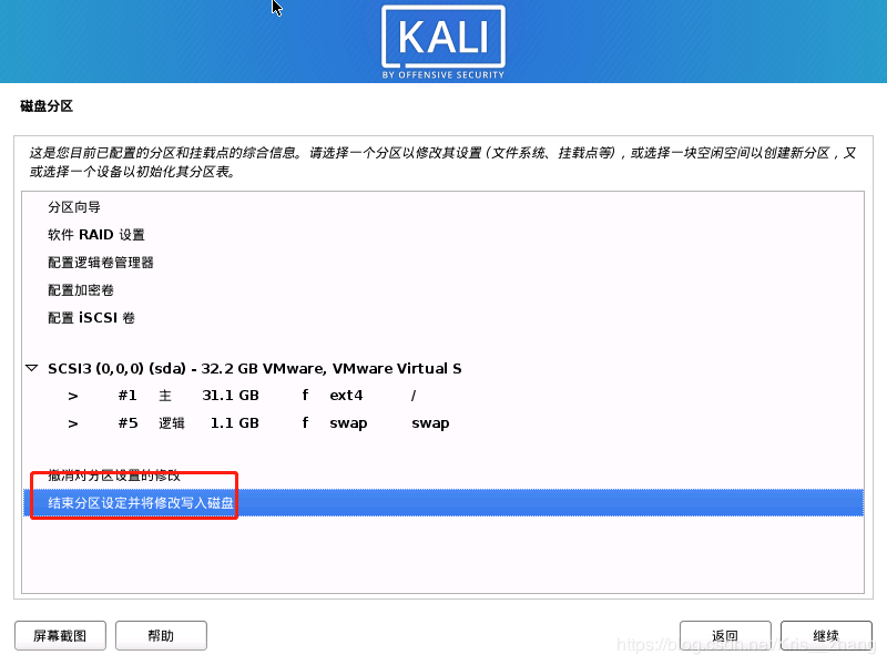 結(jié)束分區(qū)設(shè)定并將修改寫入磁盤