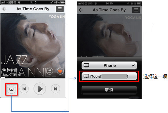連接成功后,電腦上的音響會(huì)播放iPhone上的音樂(lè),iPhone將會(huì)被靜音,請(qǐng)注意在iPhone上點(diǎn)擊播放。AirPlayer會(huì)變成見(jiàn)winwin7分享的圖片: