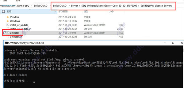 - 管理員從“SolidSQUAD_License_Servers”運(yùn)行“uninstall.bat”