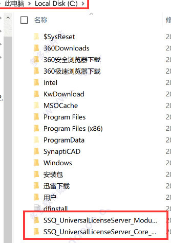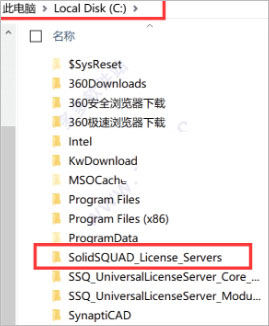 5、繼續(xù)將C:\SSQ_UniversalLicenseServer_Core_20180127075000目錄內(nèi)的SolidSQUAD_License_Servers文件夾復(fù)制到Siemens PLM NX軟件要安裝的根目錄,我們上面選擇是c盤;