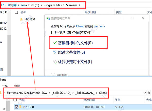 13、回到壓縮包,將Client文件夾內(nèi)的NX 12.0.2復(fù)制到安裝目錄,并替換默認(rèn)安裝目錄【C:\Program Files\Siemens】