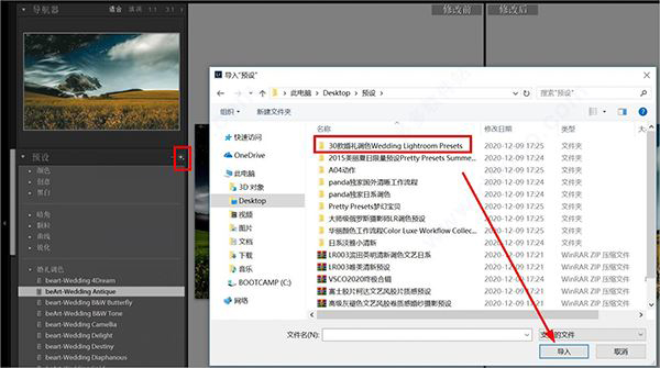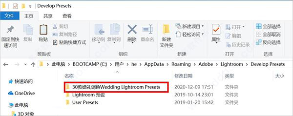 5、以“30款婚禮調色”這個預設文件夾為例,放置到Develop Presets文件夾里