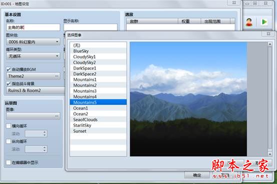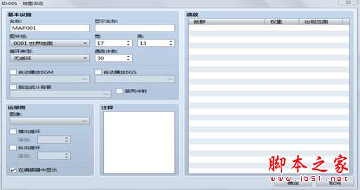 按“。。。”選擇圖像。橫向縱向循環(huán):指定速度自動滾動。注釋:對該地圖進行說明。可自由添加注釋的文字區(qū)域。 遇敵:隨機遭遇的敵群列表。