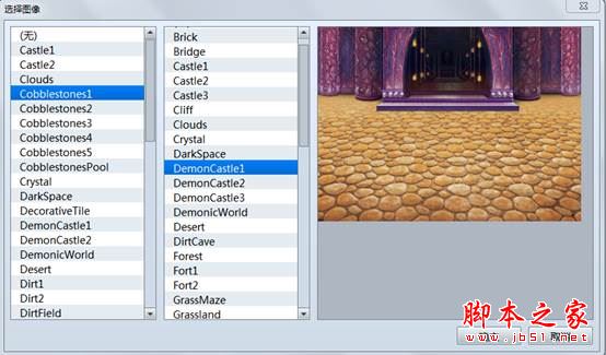 選擇圖像: 左邊列表框選擇地面背景圖,右邊列表框選擇遠(yuǎn)景背景圖。按確定按鈕保存設(shè)置。