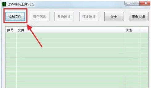 2、進(jìn)入軟件之后,點(diǎn)擊添加文件,開始添加QSV格式文件;