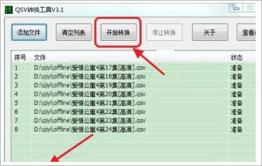 4、添加好需要轉(zhuǎn)換的QSV之后,點(diǎn)擊開始轉(zhuǎn)換,之后等待轉(zhuǎn)換為FLV格式文件即可;
