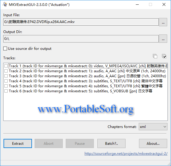 MKVToolNix 中的 MKVExtractGUI 則可以從現(xiàn)有的 MKV 文件中提取其中的一個或多個視頻、音頻或者字幕信息,是專業(yè)的 MKV 分離工具。
