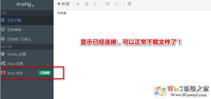 2、接下來會運行AriaNG便攜版,看到Aria2狀態(tài)已連接,就可以正常下載文件了。