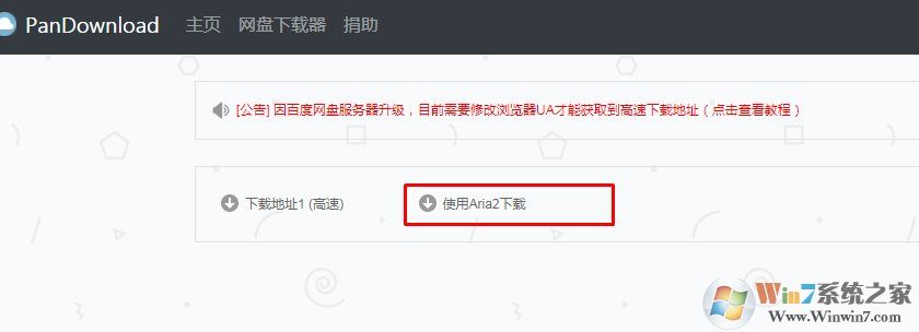 3、打開一個百度分享地址如:https://pan.baiduwp.com/share/init?surl=klKNYLQi6iQzdLtUuqUpiQ (紅色wp加進去,打開Pandownload的網(wǎng)頁版)然后使用Aria2下載