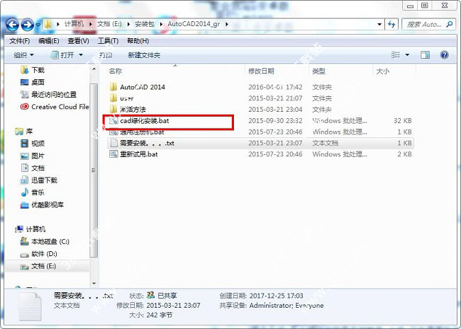 1、解壓后,運(yùn)行“CAD綠化安裝.bat”,運(yùn)行cad,安裝需要管理員權(quán)限,如果不是管理員,請點(diǎn)鼠標(biāo)右鍵,以管理員身份運(yùn)行