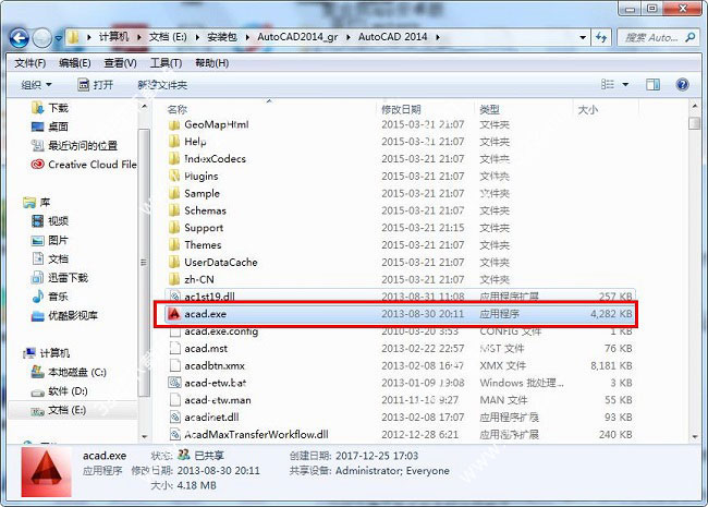 3、綠化安裝好后,進(jìn)入“AutoCAD 2014”文件,雙擊運(yùn)行“acad.exe”即可打開程序