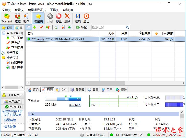 比特彗星 BitComet 綠色去廣告全功能解鎖豪華版進行了使用,個人感覺下載BT種子的話還沒有之前發(fā)布的 Photon下載器 以及 Free Download Manager 下載的速度快,不過掛機一段時間的話比特彗星BT的下載速度會慢慢得到提升。