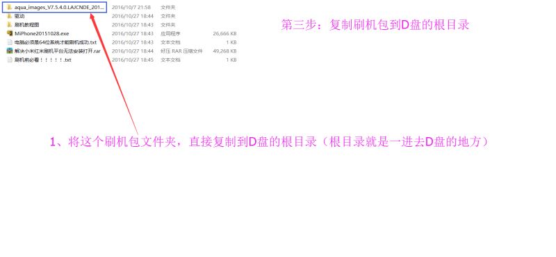 第三步:復(fù)制刷機(jī)包到D盤的根目錄