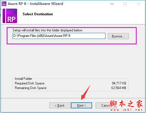 4.到這一步是選擇安裝的位置,默認是C盤安裝,但是呢 建議大家不要裝C盤,C盤是系統(tǒng)盤,可以裝在其他盤,不然C盤軟件裝多了,影響系統(tǒng)運行速度。我這邊示例的位置是安裝在D盤,根目錄是:D:\Program Files (x86)\Axure\Axure RP 8。 這個是我的根目錄,根目錄就是你的軟件安裝的位置簡單可以這樣理解。然后“Next”下一步。參考WinWin7分享的圖片: