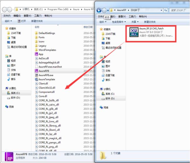 9、接著把“Axure_RP_8 CHS_Patch”移至軟件跟目錄,參考WinWin7分享的圖片: