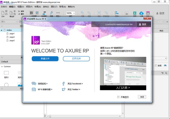 啟動 Axure 即可看到簡體中文界面, 說明已成功漢化,如果仍為英文則一定是漢化文件位置不正確.