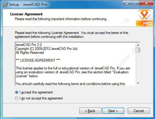 1、下載軟件壓縮包文件,首先點(diǎn)擊“JewelCADProSetup(Eva)V2-2-3R20190416.exe”安裝原程序即可,如WinWin7分享的圖片所示: