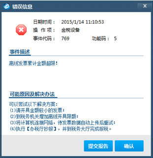 問題原因:累計(jì)離線開票金額已經(jīng)超過稅局授權(quán)的離線開票累計(jì)限額。