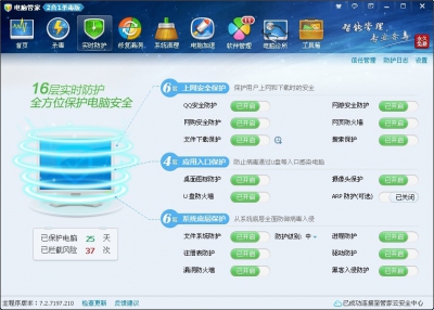 可以開啟或關(guān)閉電腦管家中各種關(guān)于實時防護的功能。