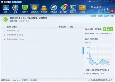 點擊首頁主界面中的【修復(fù)漏洞】按鈕,呈現(xiàn)以下【修復(fù)漏洞】界面: