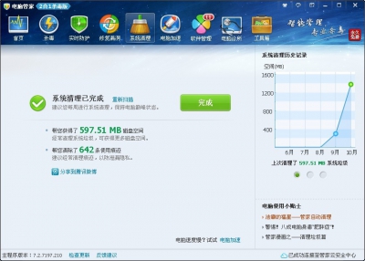 電腦管家能夠幫你快速清理系統(tǒng)中的垃圾和使用痕跡,幫你節(jié)省系統(tǒng)空間。