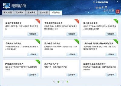 點擊“安全體驗”按鈕,可以快速解決系統(tǒng)中常見遇到的所有問題,防范可能出現(xiàn)的系統(tǒng)潛在威脅!