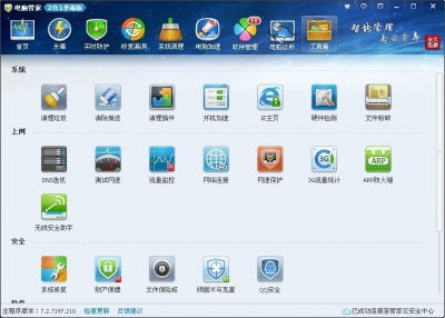 電腦管家還提供了諸如“清理插件”“硬件檢測”“網(wǎng)絡(luò)連接”“無線安全助手”“文件保險柜”等諸多實用小工具!