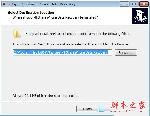 2、選擇自己想要的路徑C:Program Files (x86)7thShare iPhone Data Recovery,選擇完成后點擊確定,如圖所示: