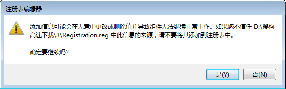 8、運行Registration.reg,添加注冊表,點擊是,如圖: