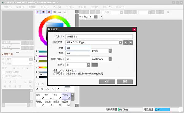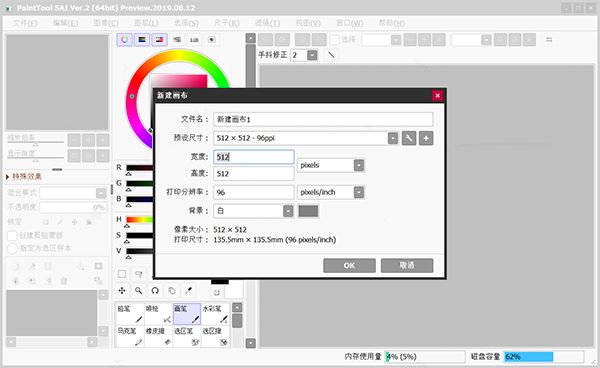 步驟一:打開電腦上已經(jīng)安裝好的SAI軟件,并新建一個適合的畫布;