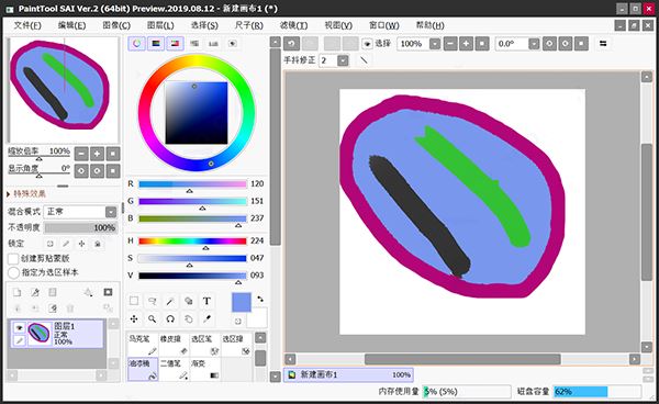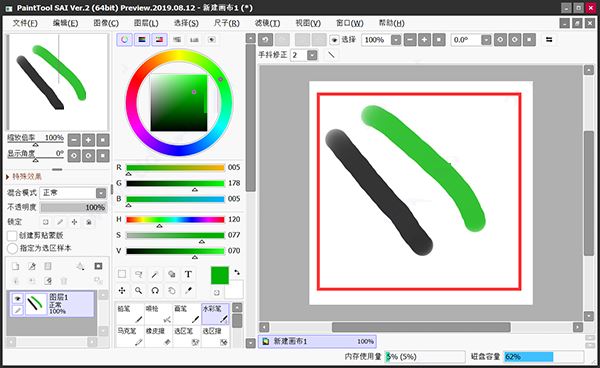 8、安裝完成后即可獲得sai2020中文破解版啦,接著即可無限制的隨意使用了。