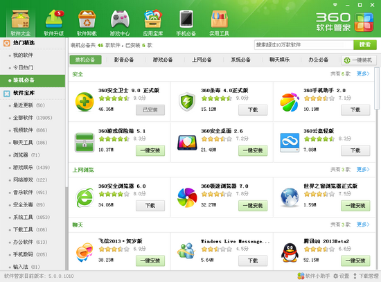 360軟件管家,為用戶打造了一站式下載安裝軟件的平臺。軟件寶庫收錄的每款軟件都經(jīng)過人工安裝驗(yàn)證,通過卡巴、NOD32、360殺毒等國內(nèi)外知名殺軟的聯(lián)合查殺,確保無毒、無木馬,用戶盡可放心下載。