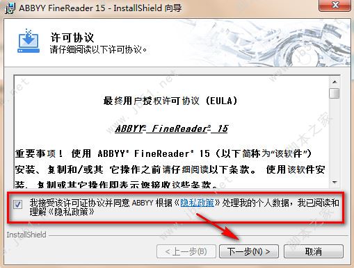 2.首先安裝軟件,雙擊安裝程序“ABBYY FineReader 15.···安裝包.exe”開始安裝軟件;