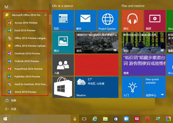 ▲ Win10系統(tǒng)里安裝后,開始菜單里的Office程序組