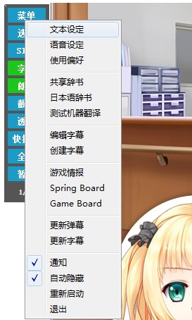 過(guò)一會(huì)后,這個(gè)界面上就會(huì)顯示游戲的圖標(biāo),點(diǎn)擊后就可以用VNR的方式啟動(dòng)游戲了。先運(yùn)行游戲,然后在選擇第一項(xiàng)自動(dòng)同步游戲,成功后會(huì)在游戲右上角有提示。同步游戲成功后,可以進(jìn)入翻譯這一步了。先進(jìn)入游戲設(shè)置把游戲的文本顯示速度調(diào)最快,不然可能發(fā)生翻譯斷裂,如果沒(méi)有問(wèn)題的話,基本開(kāi)始后點(diǎn)擊一兩句話后就會(huì)開(kāi)始有翻譯,如下圖:
