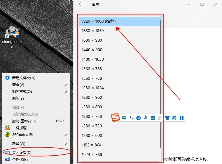 這個時候鼠標(biāo)右鍵點擊桌面,然后選擇顯示設(shè)置,把分辨率設(shè)置為自己經(jīng)常使用的分辨率即可。