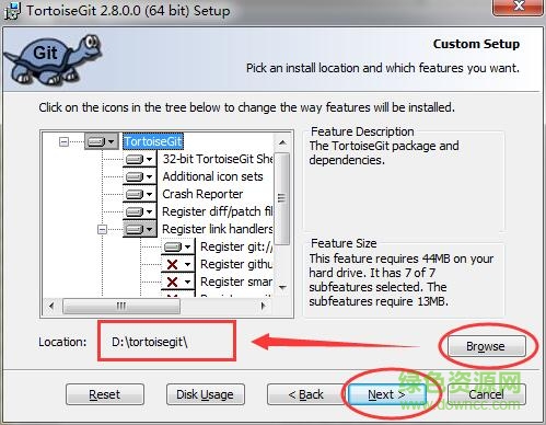 1.在綠色資源網(wǎng)下載tortoisegit,壓縮包中包含了32位和64位兩種,請(qǐng)根據(jù)操作系統(tǒng)位數(shù)選擇,并且已附帶了中文語(yǔ)言包