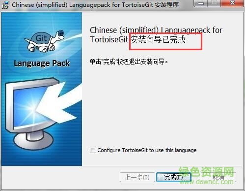 12.點(diǎn)擊“完成”即可,到這里tortoisegit中文版就徹底安裝完成了。