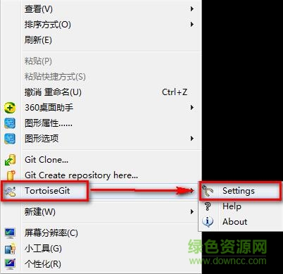 2.在電腦屏幕空白處鼠標(biāo)右鍵,選擇tortoisegit-settings,就到了配置界面