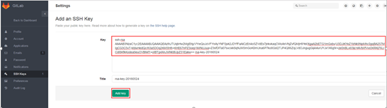 把生成出來(lái)的public key復(fù)制粘貼到gitlab上面,配置ssh key。