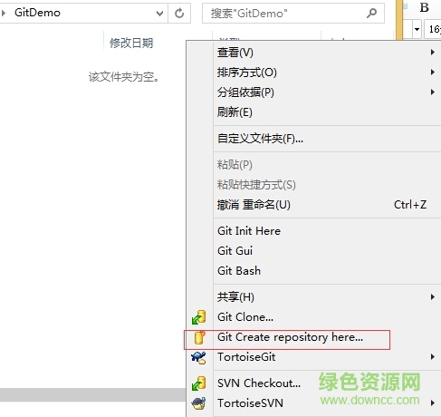 創(chuàng)建一個(gè)文件夾gitdemo,然后右鍵--git create repository here...