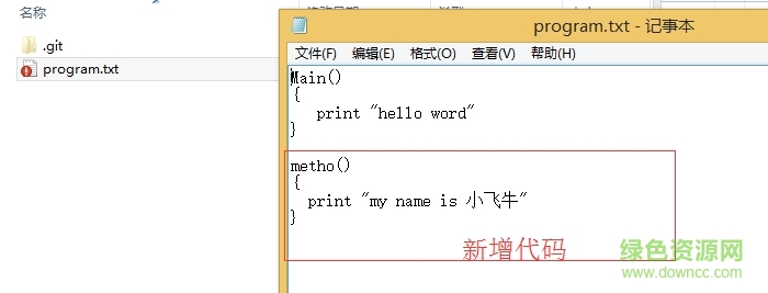 3.然后在program中添加一個(gè)新的方法method。當(dāng)文件代碼改變,那么文件會(huì)顯示為一個(gè)紅色感嘆號(hào)