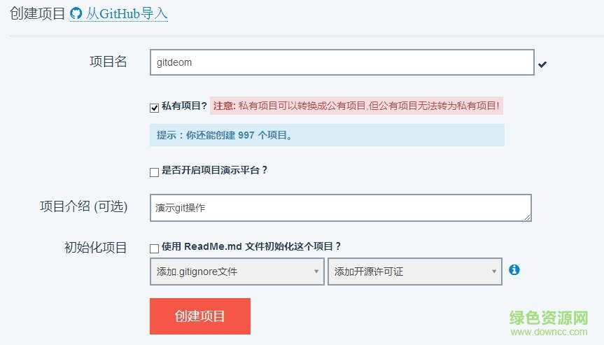 6.1:在oschina上新建一個(gè)項(xiàng)目,進(jìn)入oschina-->git@osc-->新建項(xiàng)目