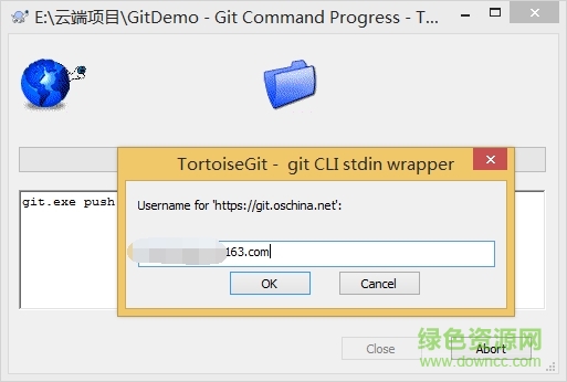 設(shè)置好url,確定。然后開(kāi)始push,輸入用戶(hù)名,輸入密碼就ok了