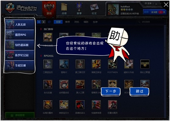 獨(dú)有個(gè)性游戲管理,自選游戲操作,玩家可以依照自己習(xí)慣的游戲設(shè)置重新編輯平臺(tái)左側(cè)最近游戲欄,即時(shí)調(diào)整最近游戲排序,以便玩家最快速的點(diǎn)擊進(jìn)入自己喜愛的游戲,免除玩家每次進(jìn)入游戲前所要尋找游戲進(jìn)入的麻煩。