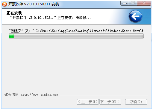 確認完之后程序開始自動安裝,開票軟件安裝時間較長,請耐心等待安裝程序完成安裝。