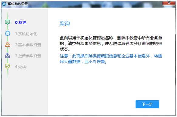 首次啟動后軟件將出現(xiàn)初始化向?qū)?,按步驟進行初始化,信息如實填寫。
